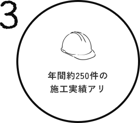 迅速かつ丁寧な施工で、年間約250件の施工件数を達成。技術力・提案力ともに自信がありますので、ぜひご依頼ください。